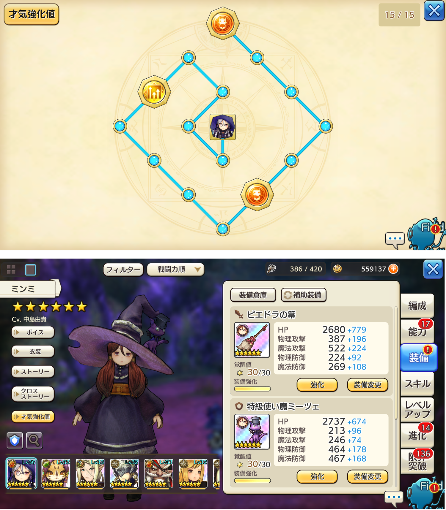 予定外の出費ではありましたが、その甲斐あってミンミちゃんの才気を完走することが出来ました!!ルーンも付け替えて、BPは31000に到達!!(金欠も加速しました)