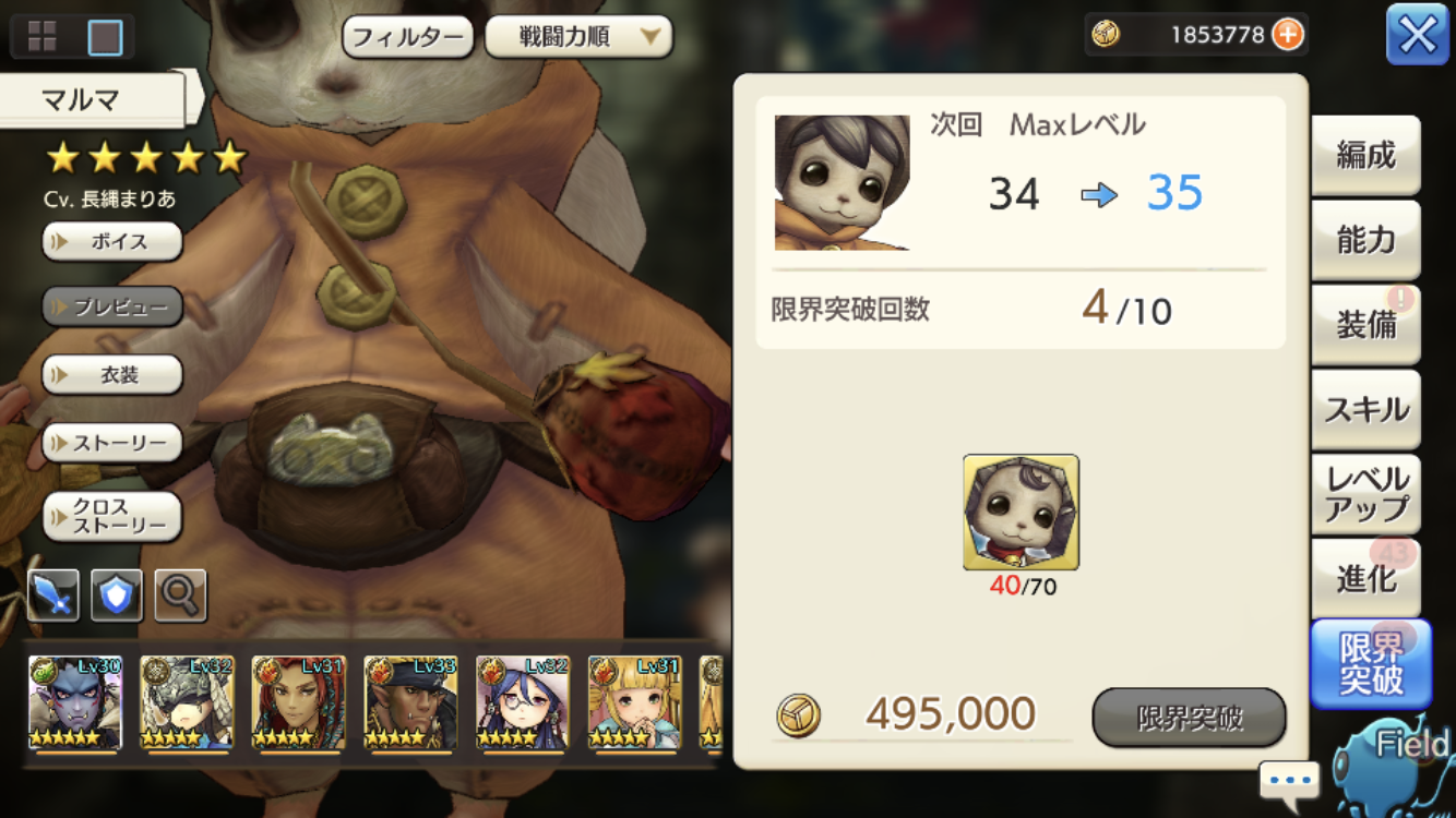 その方まで届かなくても星5にはしたくて、そして気づけば限界突破もしてて。でも他のキャラを育てる間にやってるからゆっくりゆっくり…あと少しで…って時に星6実装。