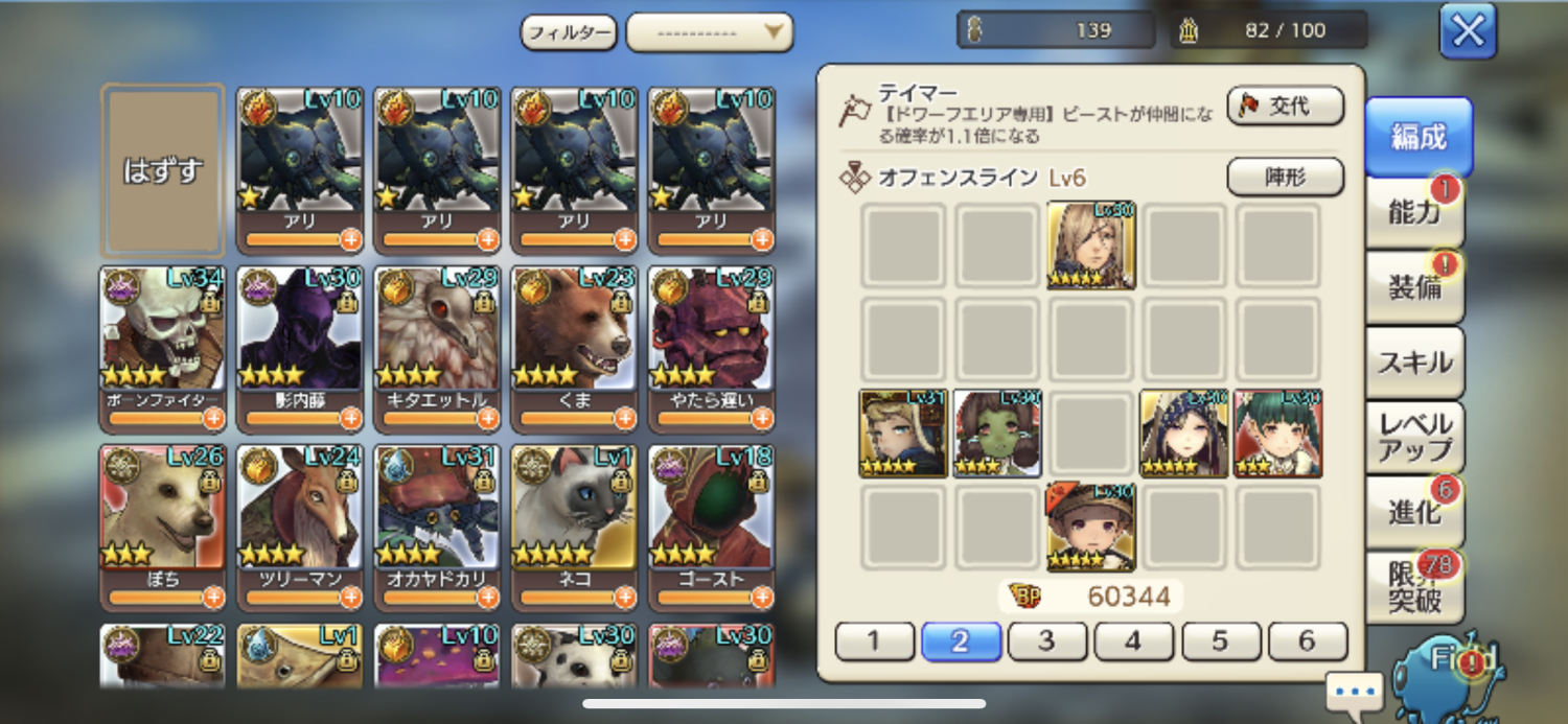 ただ、元が高くないとバフデバフ入れてもどうしようもないのでタンクとエッダとアタッカーとドバターは星5まできたえましょう