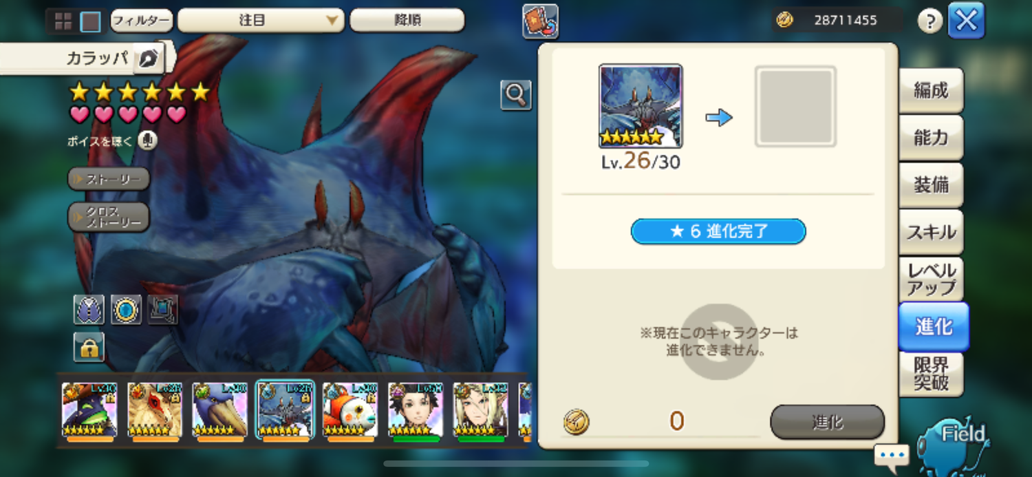 カラッパ可愛かったのに…進化画面ショックでスクショし損ねたわ…