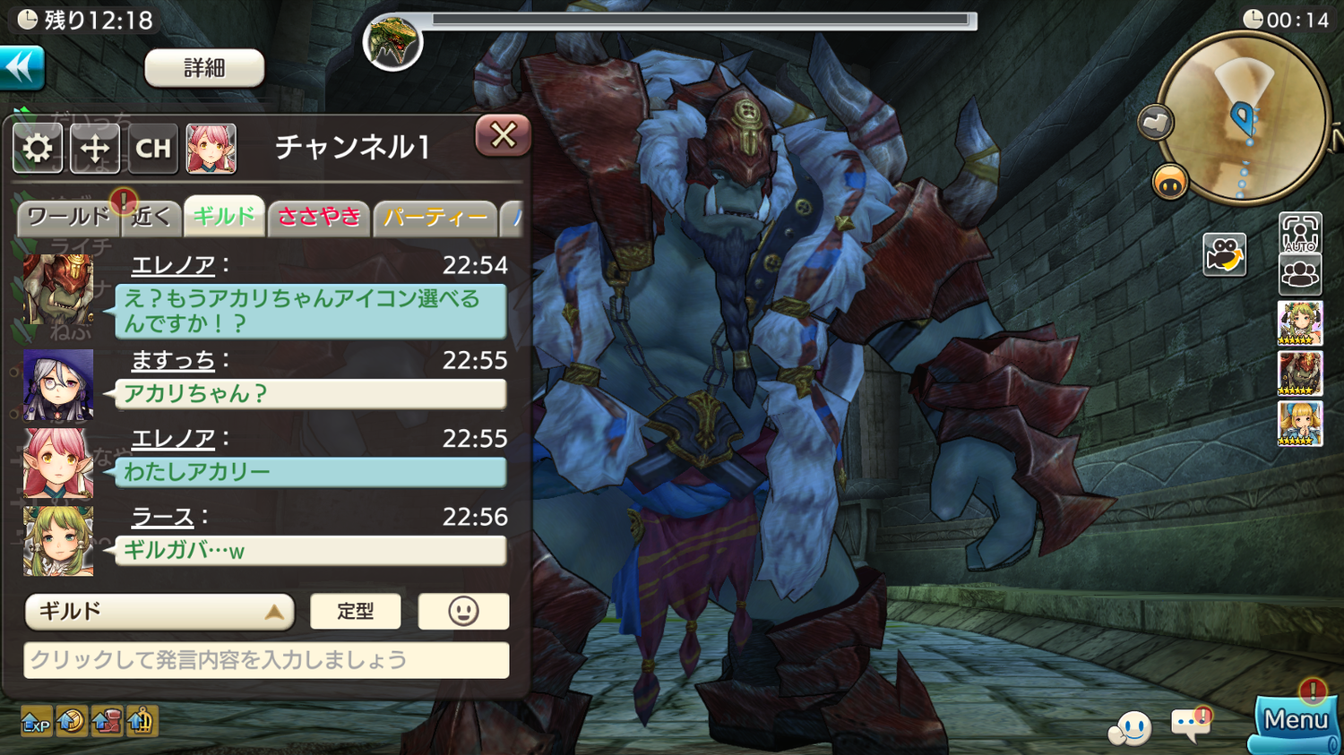 近くチャットの吹き出し出ますからね、ギルガバおじちゃんの頭上に・・・。