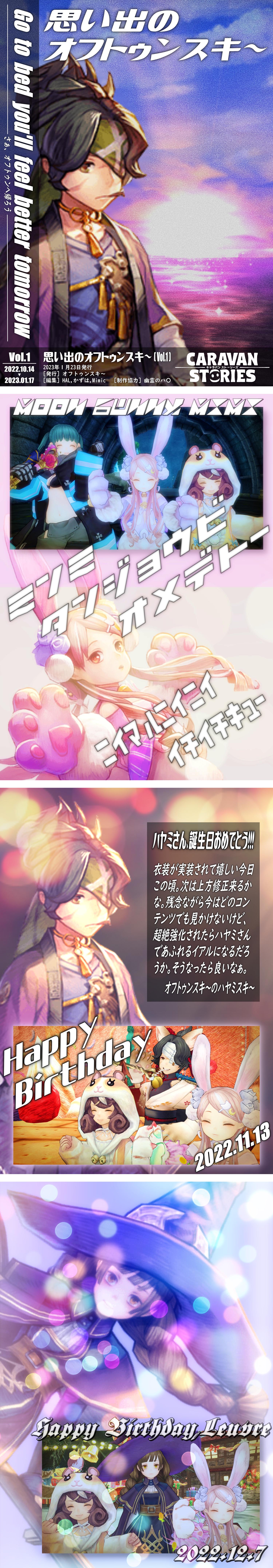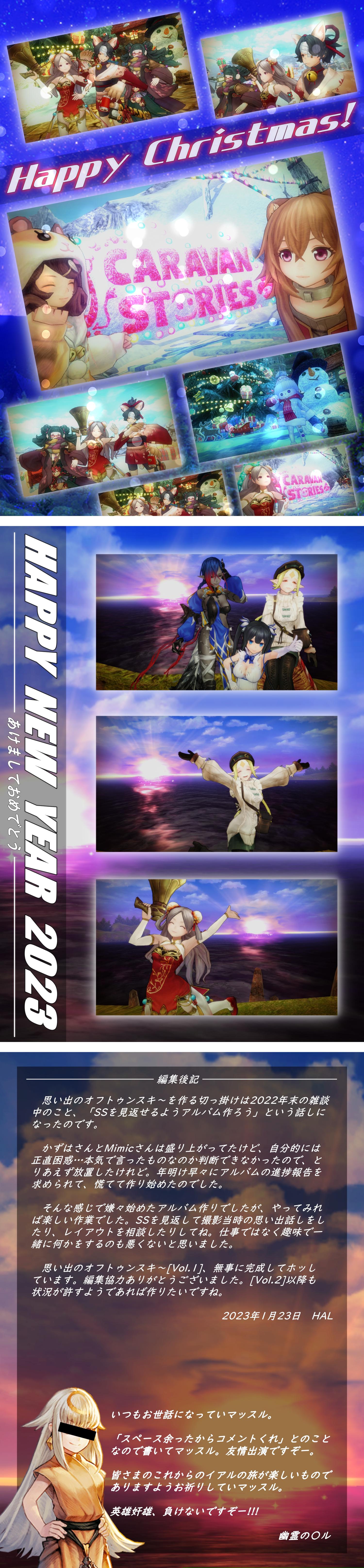 2022年末の雑談中に「SSを見返せるようアルバム作ろう」って話しになり、出来上がったのが“思い出のオフトゥンスキ〜[Vol.1]”。心が荒んだ時にでも見返したいと思います。