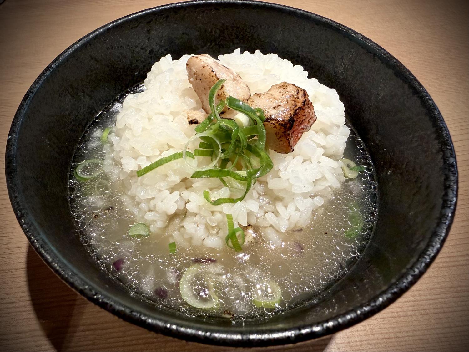 〆にスープをご飯に…