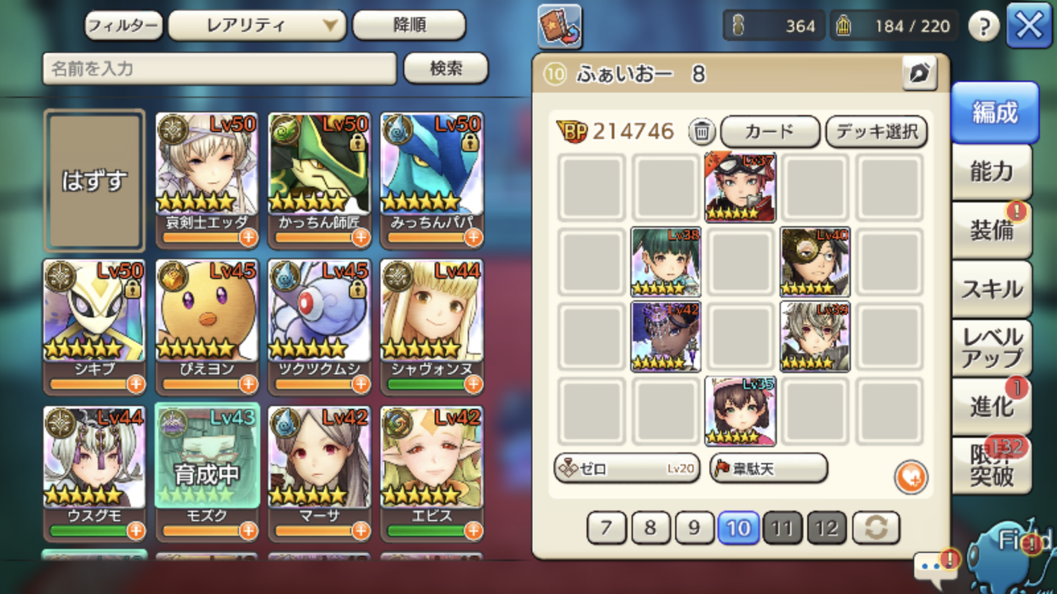 キリアン665、ラシャーナ666、レオ655、ガラッド655、アメリア665、ロロミュ655で再度トライ!