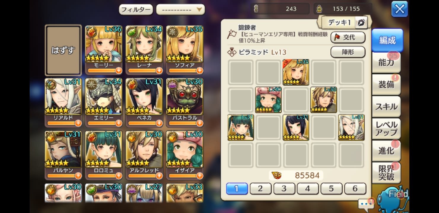 2018/10/19 00:34 公開 ロヴァニエ 念願のクリア(((o(*゚∀゚*)o))) 雑日誌 攻略 何度もチャレンジしてた、ロヴァニエをクリア出来ました。ベネカ様々です。鬼ごっこが下手っぴなので、中々削りきれず、いつも時間切れだったのですが………ソフィアに知力積んだら行けました。編成はスクショの通りです。ソフィアは左右に動かして、盗賊3人になったら、ガチンコ勝負で、時間ギリギリ数秒残りでした。アドバイスくれたななさんと、クリアして日誌を上げて下さった皆様のお陰です。ありがとうございました(((o(*゚∀゚*)o))) シア リンクをコピーしました 前の旅日誌 旅日誌一覧 次の旅日誌 コメント 1 ルナのジェシーち ID: c7kj2wkfftjb すげー。おめでとうございます。ダメージ減や増をかなり積まないとクリアできるだけません。私はまだそのエリアにはまだ無理です。 2018/10/19 05:53 2 もふω ID: j6qmtngtk6mc シアさんおめでとうございますーーー!!!‹‹\(´ω` )››‹‹\( ´)›› ‹‹\( ´ω`)››~♪★ロヴァニエステキーーーー!!!!!私も頑張らねば( 'ω' ;) 2018/10/20 21:57