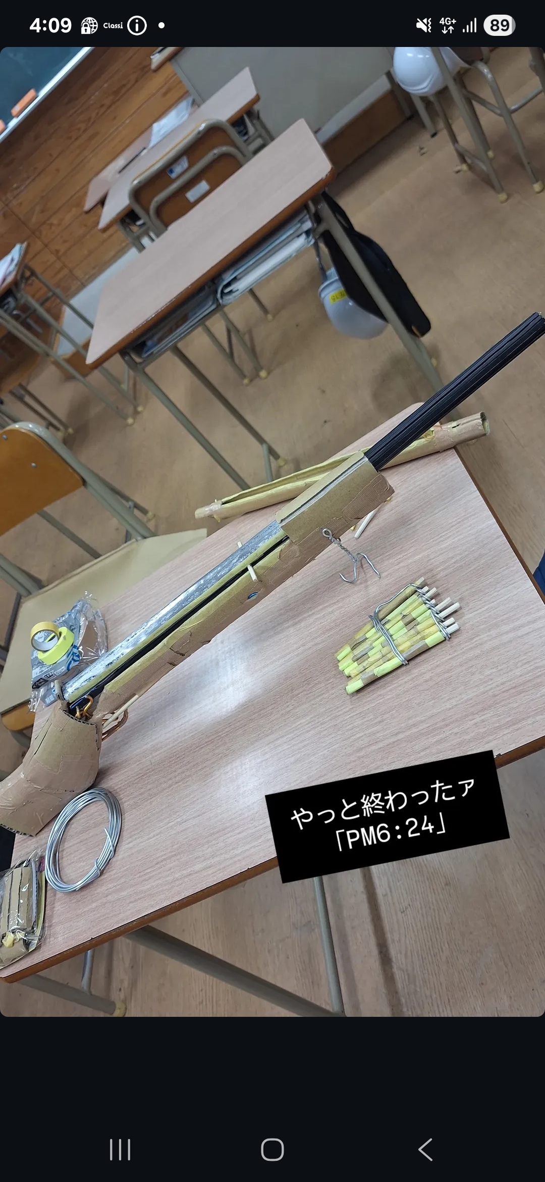 金曜日は文化祭でした、うちの学科は射的を運営することになり銃作れるからとイヤイヤ組み込まれ、自分が作っておいた段ボール製の鉄砲はクラスメートがじゃれついて前日に故障が発覚。。。更に他の班員はゴム鉄砲しか作れないと言うことで学校終わってからホムセン行ってライフル作成してきました、全長1.5mのライフルで三時間程で作りましたが、こんなサイズ故に学校に運び込む際はスナイパーライフルを背負っているかのようになってしまい、かなり恥ずかしかったです。。。