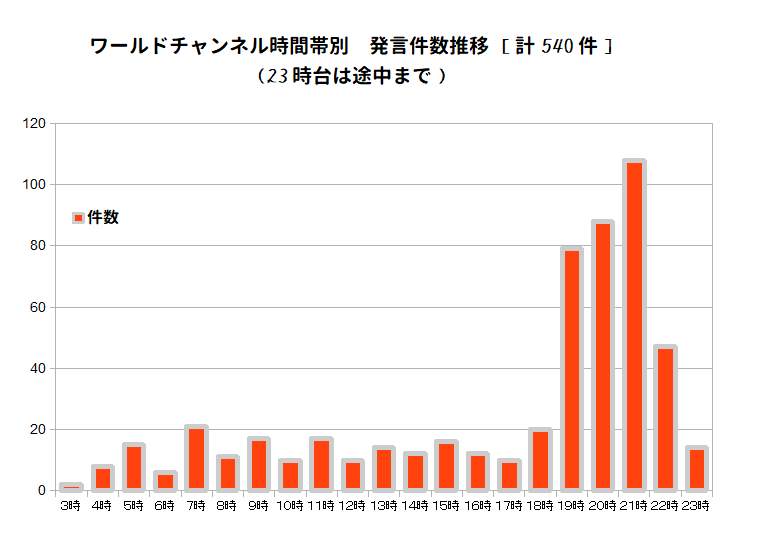 ③夕方19時頃よりアクセス者数が増加している為か、雑談が急増。