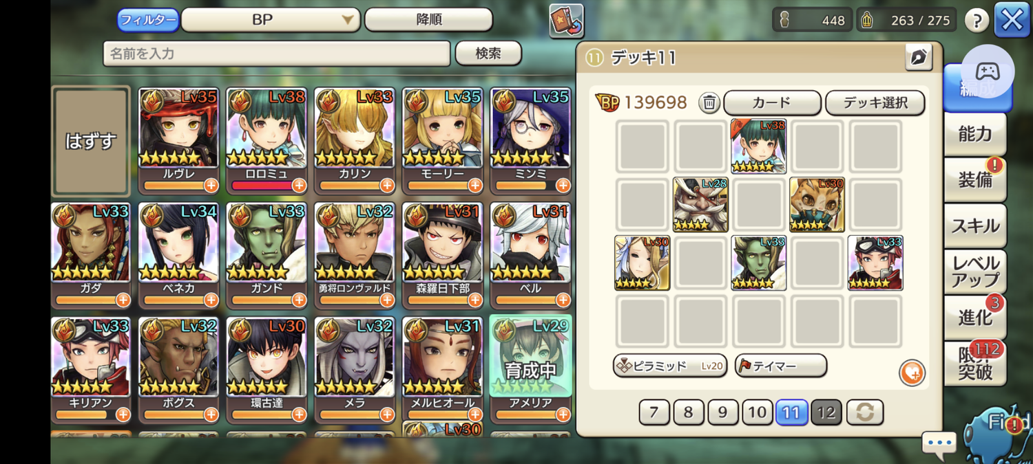 そんなこんなでとりまパーティー編成だけポイします。
