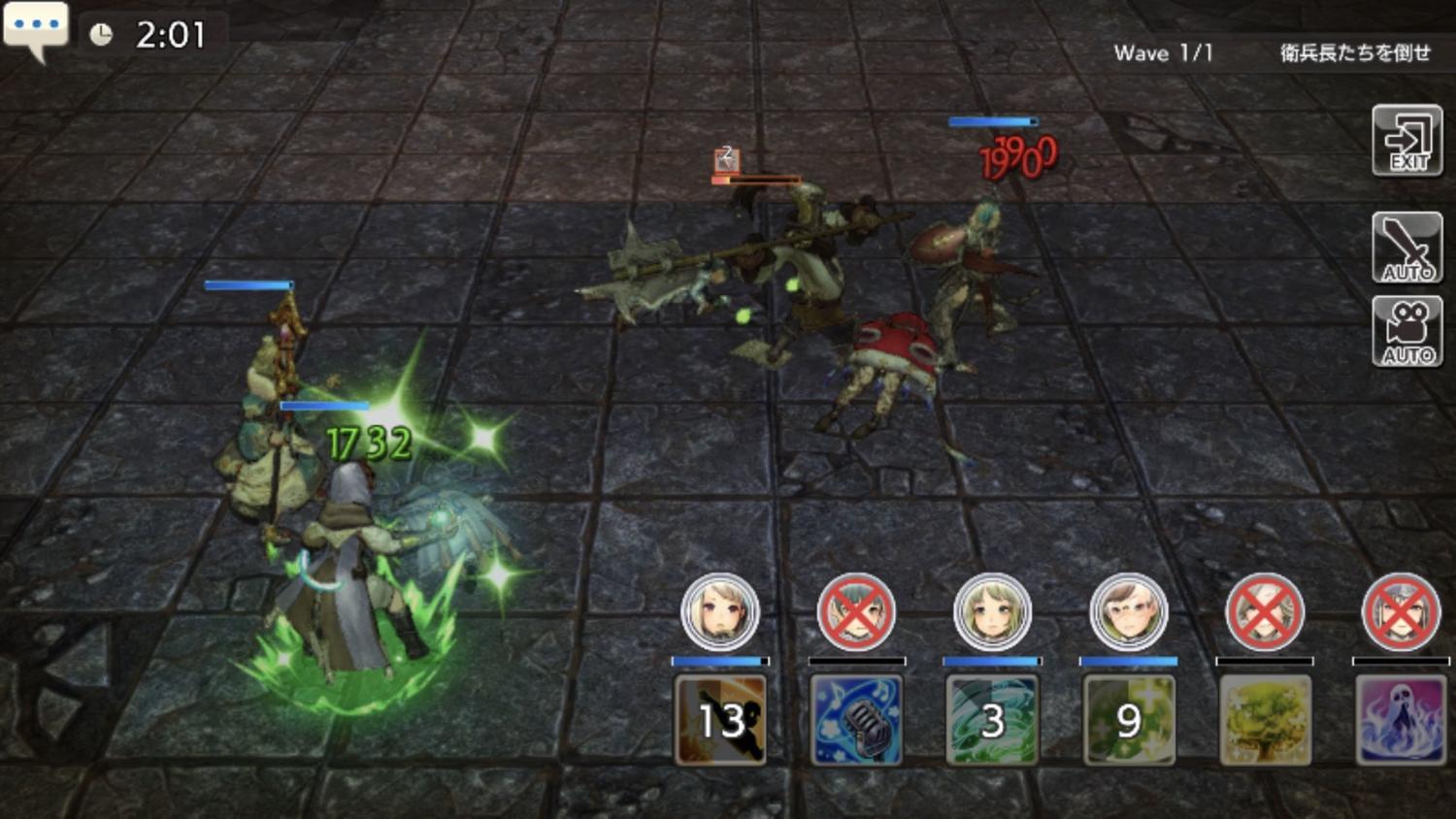 タンクを動かしてるとタゲから外れた敵が後衛を狙ってきがちなので、タンク以外の5人を一括選択しておき、いつでも端に避難できるようにしておいた。それでも3人死んだ…。