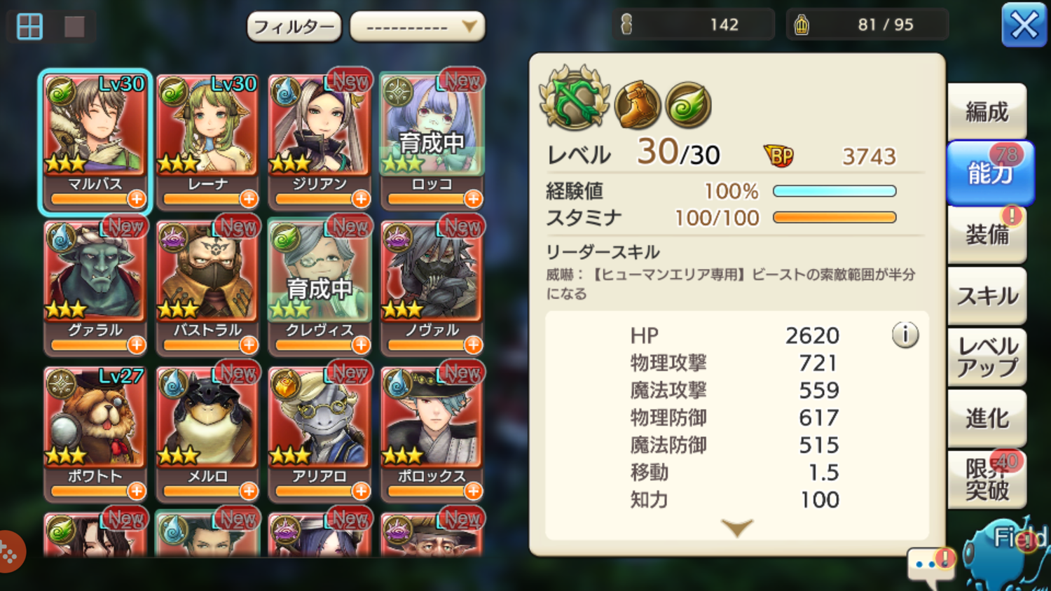2018/04/23 21:42 公開 ヒーロー進化状況 雑日誌 スクリーンショット ☆3が結構いますね育てる予定が無いのもいるけど!下に見えていないけどマイラとメルヒもいます。そして☆5にしたキャラが画像2です。残りのキャラは☆4です!ビースト宝珠(中)の光を集めてたらキリンが立ちました!物欲センサー無いときほどよい結果になるようです! 迷惑探偵☆のの リンクをコピーしました 前の旅日誌 旅日誌一覧 次の旅日誌 コメント