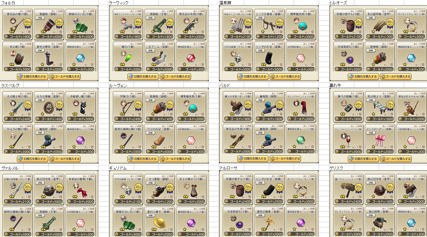 3/02 メンテ前 装備商人一覧