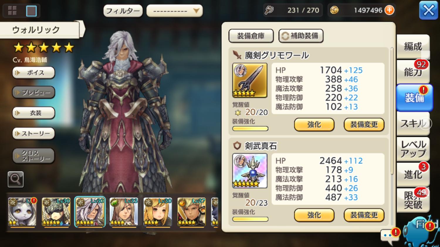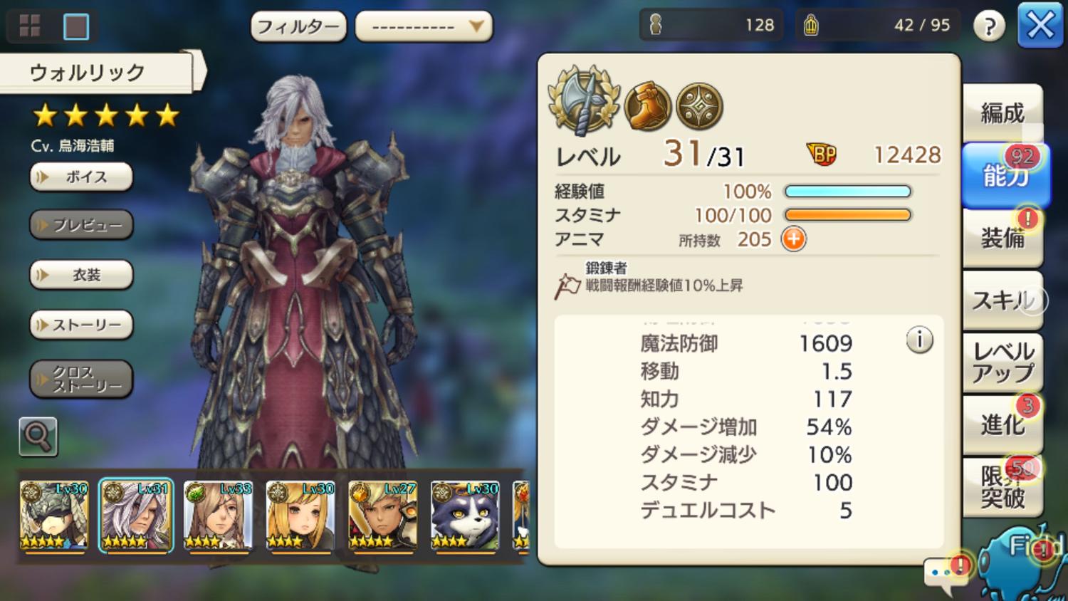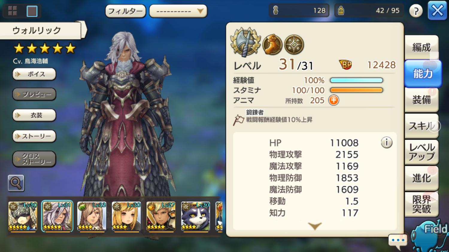 しばらく、ログイン勢と化してましたが貯まった石でウォルリックさんを回したら手に入ったので、育てようと決意。