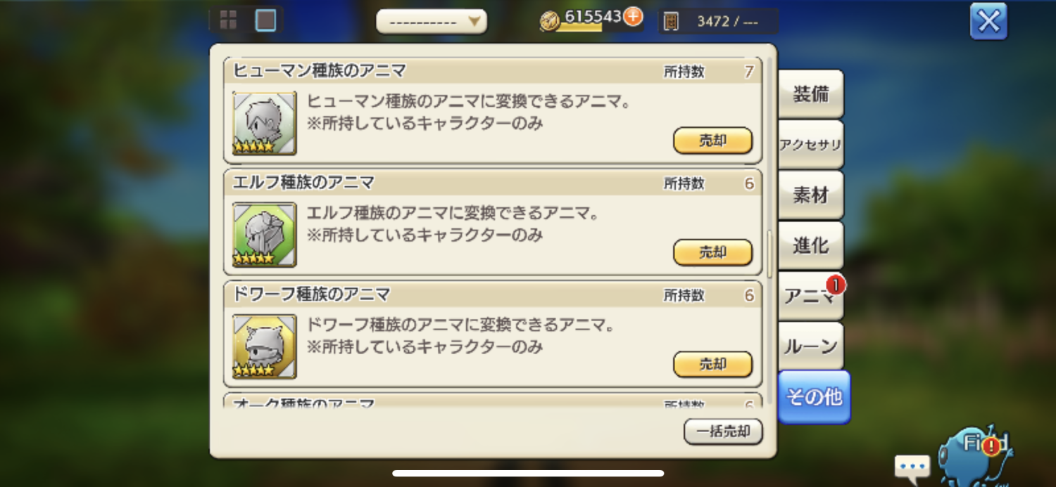 アニマ所持数ってとこがあるのですけれど、その所持数の横にプラスボタンがあるのでそこをポチると変換できます(/・ω・)/