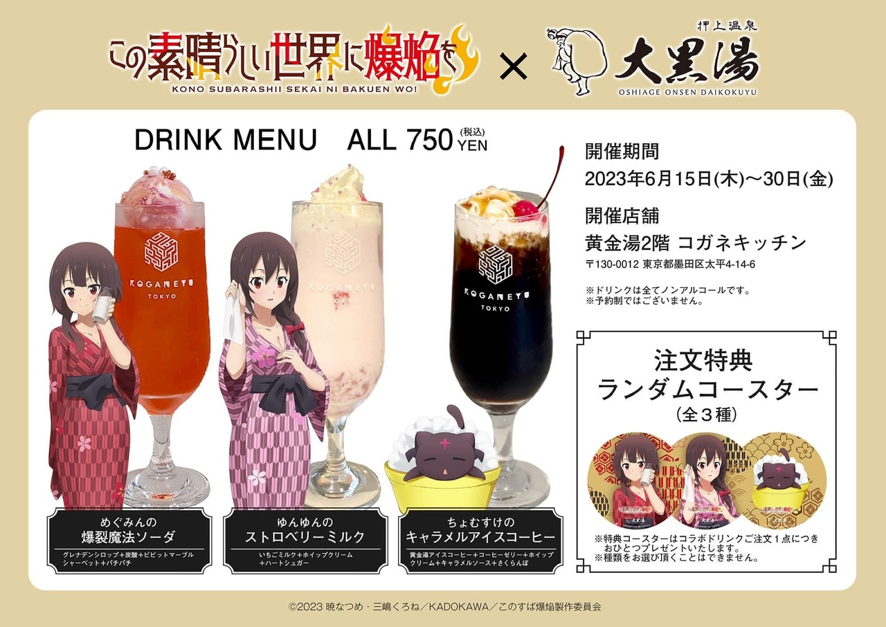 近所の銭湯2件で、「この素晴らしい世界に爆焔を!」とコラボしていました。