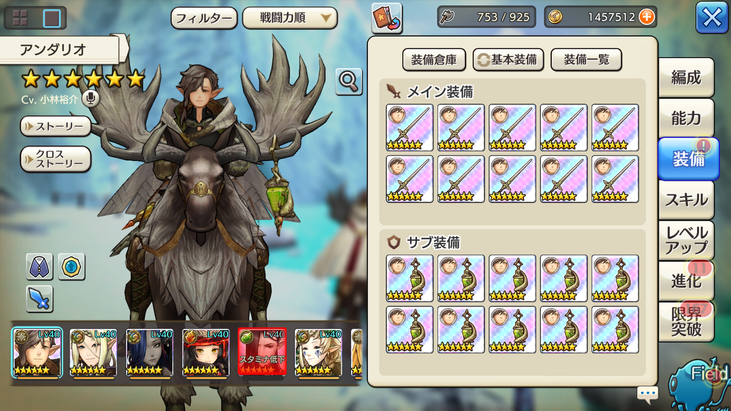 ゲーム初めたばかりでキャラいっぱい居る~誰育てよう~と考えている中、コラプターで見かけたアンダリオ。