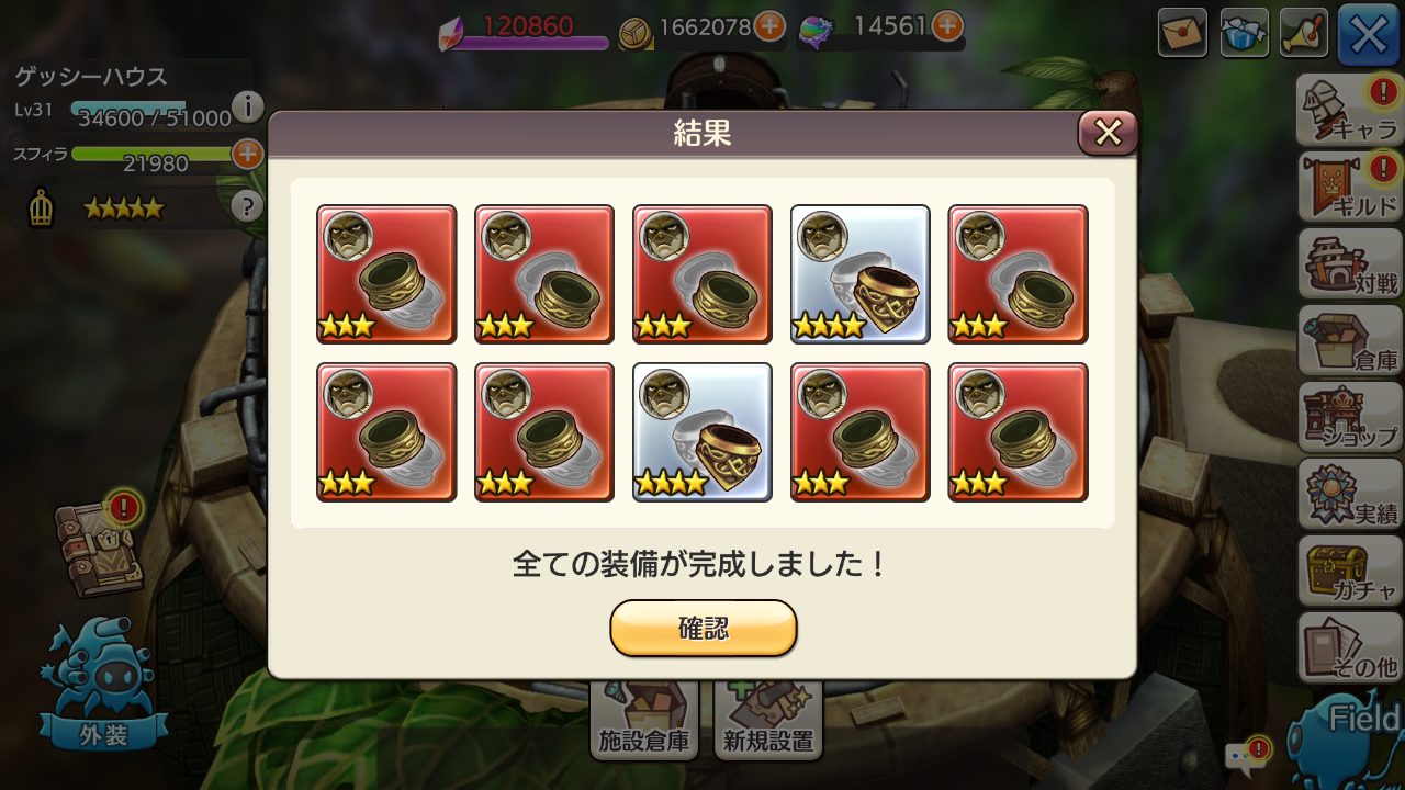 まだまだ☆5付けてないキャラも多いし、補助装備に☆5詰め込みたいし。。。