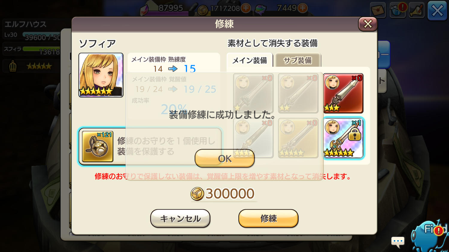 ・・・みたいな、ざっくりしすぎのイメージしか湧かなかったのですが、修練途中まで比較的安全にすすんだものの、さすがに必要ゴールドが1回20万Gの表示がでたとこで、「所持金やっべえじゃん・・・」と思い出しました^^