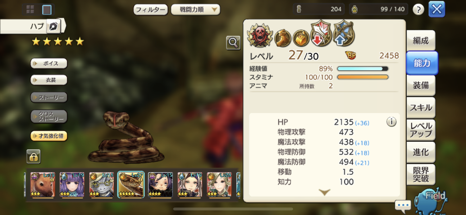 アニマ集めには苦戦しましたが、星5まで成長することができました。