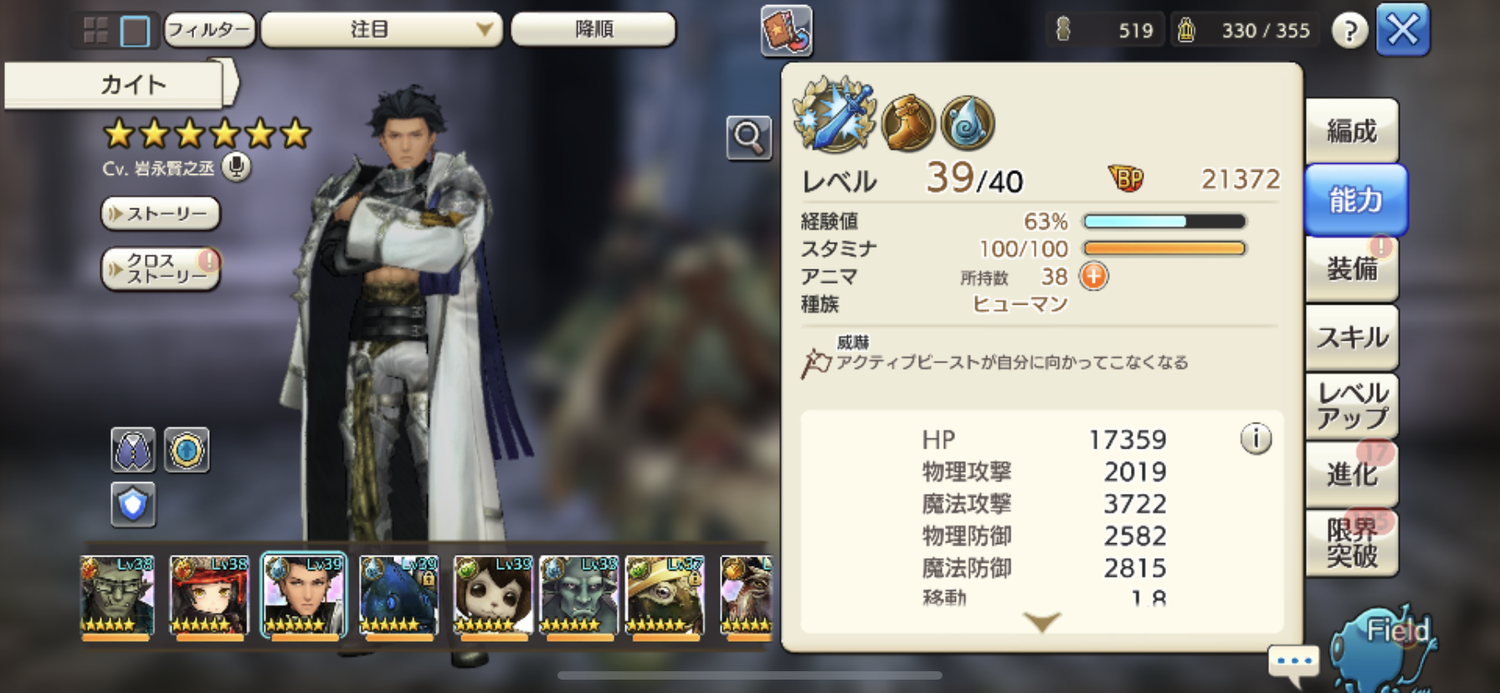 カイト…655レベル39 知力126 ダメ増12 ダメ減44