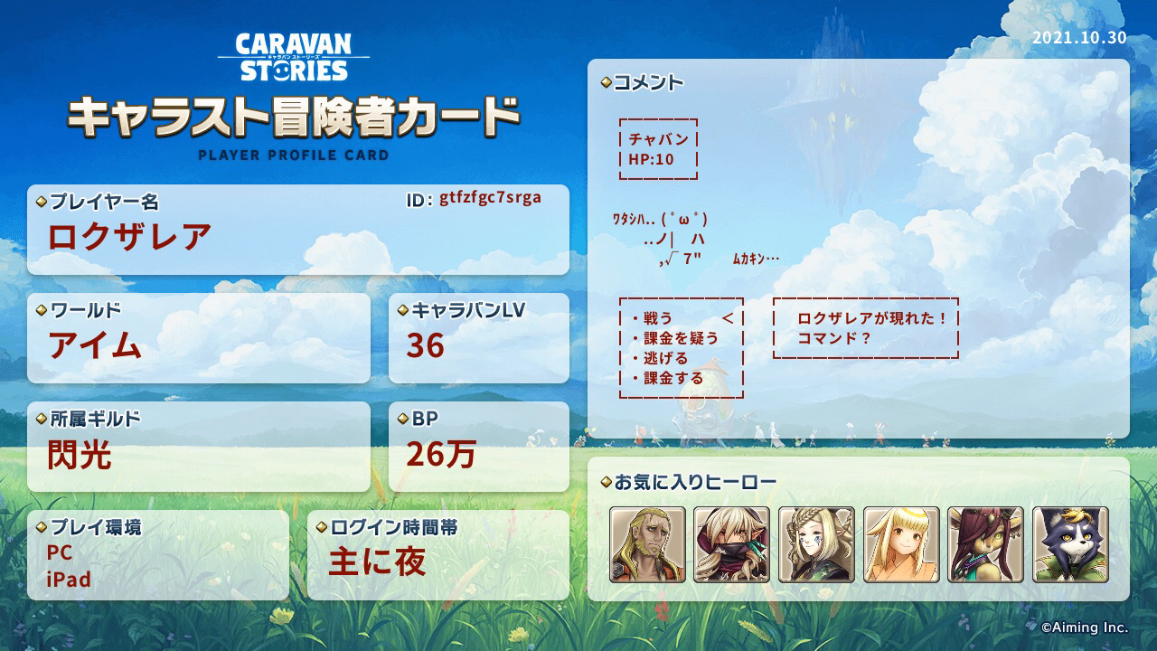 2021/10/30 15:33 公開 #キャラスト冒険者カード 雑日誌 完璧ですな_(:3 」∠)_https://caravan-stories.com/event/adventurer-card/ ロクザレア リンクをコピーしました 前の旅日誌 旅日誌一覧 次の旅日誌 コメント 1 吾妻 ID: bquh5bwvxkni 「魔法」ではなく「課金を疑う」で少しお腹が...(*´艸`*)プププ 2021/10/30 21:53 2 ロクザレア ID: gtfzfgc7srga >> 1 プロフィールの図鑑を見れば分かるんですが、無課金ではあり得ないようなキャラ育成をしているので・・・(ソロやゾンカカ、エンシェント全種コンプ等)リア友にガチ目に課金を疑われた実話から来ていますw一応、各コマンド選択した続編の構成を考えてはいるんですが、AA(アスキーアート)や200字制限が大変なので、頓挫中ですw 2021/10/30 22:08 3 ナポリ ID: v8ikkh8x6a4s 首なし騎士「あの、わたしは…あ!お気に入りよりもさらに上ですねわかります!!」アリアロ「CT減少スキル下方修正したいと思います」イザイア「…。」 2021/10/31 10:10 4 ロクザレア ID: gtfzfgc7srga >> 3 フフフ・・・甘いですよナポリさん・・・現在続編を製作中ですので・・・「彼等」の出番も十分にありますよ( ˊ̱˂˃ˋ̱ ) 2021/10/31 10:41