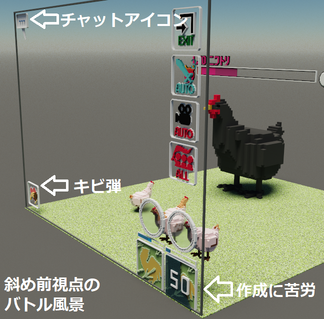 もちょっとプラッシュアップして、バトルエリアの端の青白い外枠とか