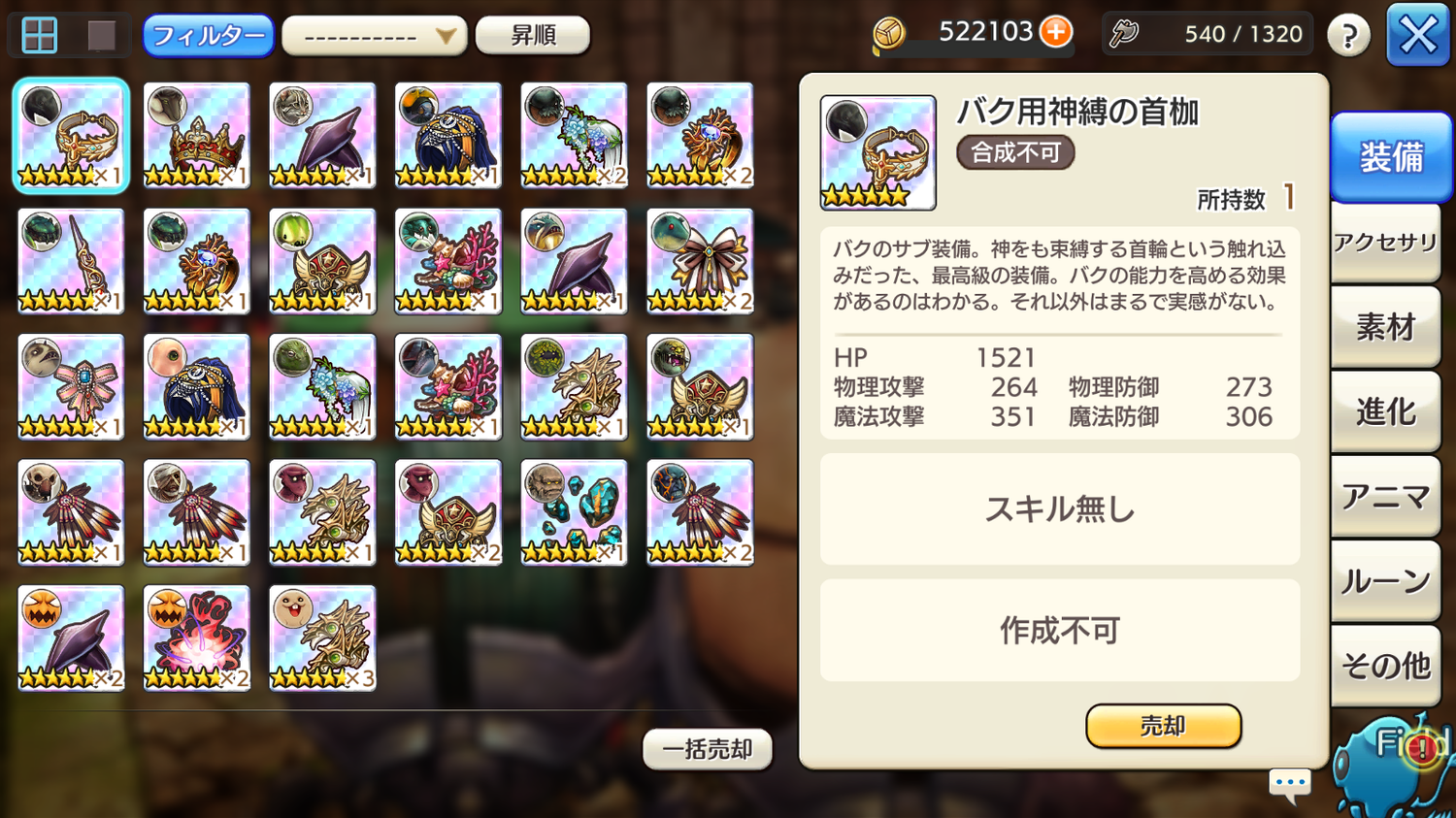 装備袋がハズレだらけ・・・バク★6とかいらないからね(T_T)