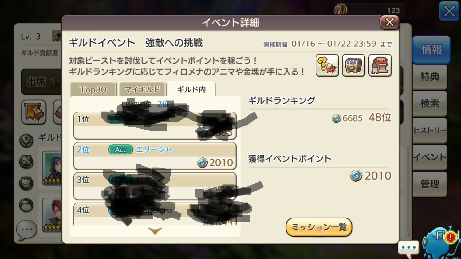 2018/01/20 20:09 公開 今日は 雑日誌 ギルドイベント頑張った!2000ポイント超えたよ!初めてギルドで二位に入った。前回は下の方だったのに!だって、フィロメナさんのアニマと覚醒ルーン2が欲しいんだもん。明日、明後日も頑張ろう! エリーシャ リンクをコピーしました 前の旅日誌 旅日誌一覧 次の旅日誌 コメント 1 禍鬼 ID: a3jeggkpwzkt おめでとうございます!( ´∀`*)自分もpt集めていますが全然ですね…まだ先のようです…笑 2018/01/20 20:16 2 エリーシャ ID: 9p39pv8y6tpd >> 1 ありがとうございます!少しつらいですが、1日で1000ポイント近くいけるかもですよ。 2018/01/20 20:18 この発言は削除されました(2018/12/25 03:00) 3 4 エリーシャ ID: 9p39pv8y6tpd >> 3 ありがとうございます。今日頑張ったので明日、明後日、明明後日はゆったりやれそうです。 2018/01/20 20:55 5 にゃんこラジオ局 ID: ya5ze9qu2yie おめでとうございます(*´ω`*)自分は今1000ポイントで諦めかけてます...その分エリーシャさんを応援してます(*`・ω・)ゞ 2018/01/20 21:57 6 エリーシャ ID: 9p39pv8y6tpd >> 5 ありがとうございます。応援!嬉しいです!明日、明後日がんばります。明明後日はなかった 2018/01/20 22:01 7 三銃士のみっきー ID: vmdyg7qgv98e ついに私の10倍まで?笑誰か強い敵倒してくれる人いないかなー!?笑 2018/01/21 02:12 8 海蛍 ID: fdyd887w3p2f 名前消しが雑www__ロ(。。*)ケシケシ...ビリッ!!___ ロ_( ̄ロ ̄;)アッ!!ヤブレタ・・・ 2018/01/21 02:19 9 ヒナ ID: f6gweadx9btj あと1日!がんばりましょ(=´∀`)今回ポイントキツイ〜(~_~;)3000までまだ1000弱あるよぅ(T ^ T)ルーンのためにあきらめないわ! 2018/01/21 22:56 10 エリーシャ ID: 9p39pv8y6tpd >> 7 10倍なんですかね?誰かいるていいですね。 2018/01/22 12:48 11 エリーシャ ID: 9p39pv8y6tpd >> 8 雑ですみませんです。スマホ備え付けの編集なんちゃらなんですが、うまく使えなくて。 2018/01/22 12:49 12 エリーシャ ID: 9p39pv8y6tpd >> 9 はーい、頑張りましょう!ルーン待ってろ!ですね。 2018/01/22 12:50
