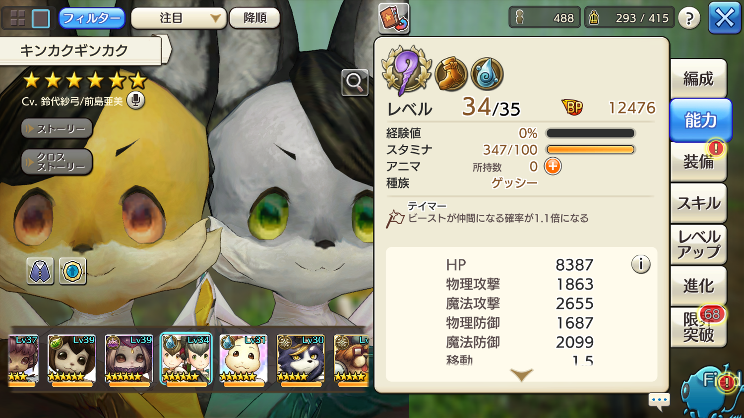 ガチャ回してないので★6進化+耐性6レベル+限界突破1くらいが限度。