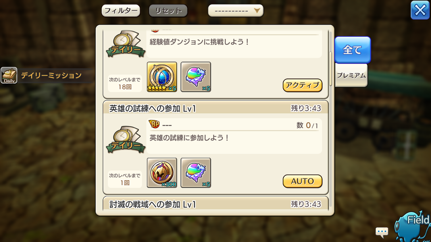 ネロもしくはネロ関連の近所(ネロ港とか)で日を跨いで、直接英雄の試練を受けると、こんな感じになるみたい。内部的に日を跨ぐと勝手に更新されるものと、別地域に移動とか戦闘を挟まないと次の日扱いにならないのがあるのよね。