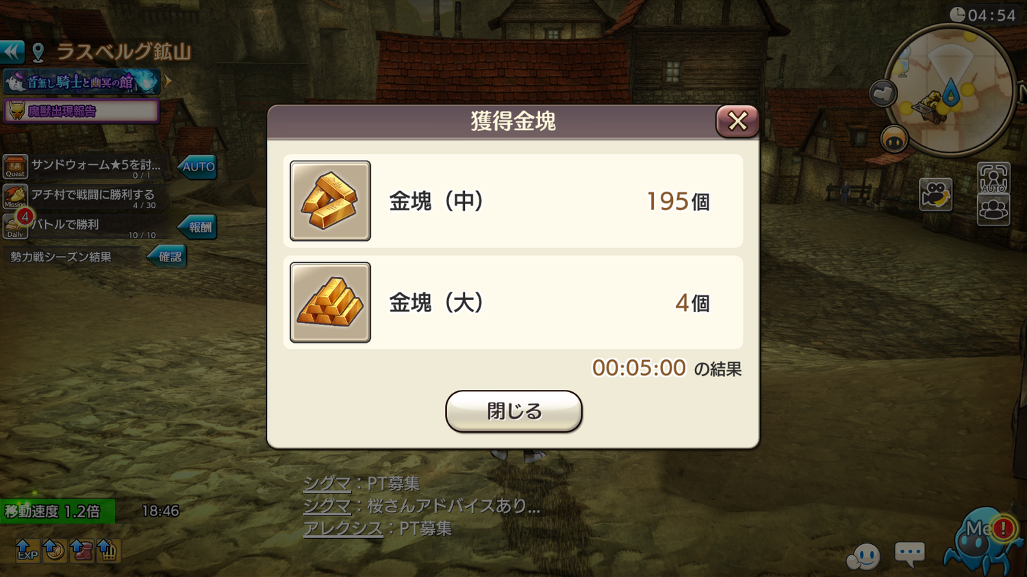 ギルド主催のとうめつでマスターさんとサブマスターさんとPT組みっぱなしの状態で、ギルチャではちょっとはばかられる詳細な自分の戦力報告とかの雑談をして、属性レイドでたらそのPTのまんま参加して共闘するのが最近のスタイルなのですが、23:03にアスドラ覇王クリアした直後に、ちょうど属性Lv2が出現したのでPTごといきました。