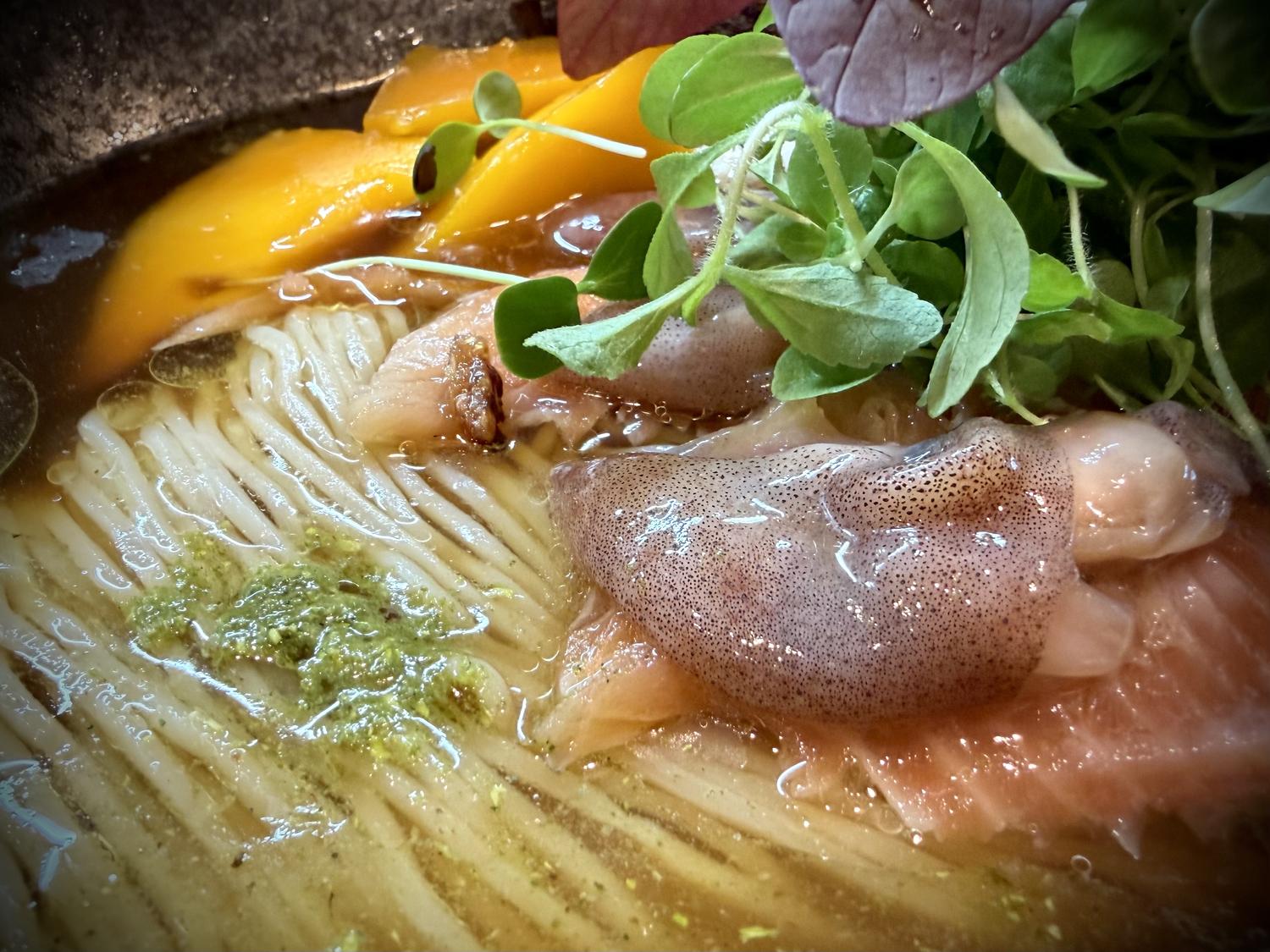 富山産ホタルイカに、山椒オイルとシェリービネガーwww