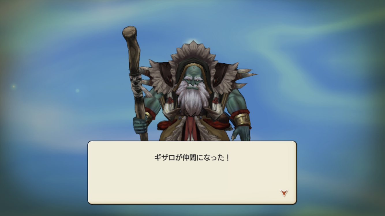 水のおじいちゃんなのですが、土のタンクが育ってないのと、敵がギザロ1人なので挑発範囲は狭いけど防御が一番育ってるヒュマアバをチョイス。