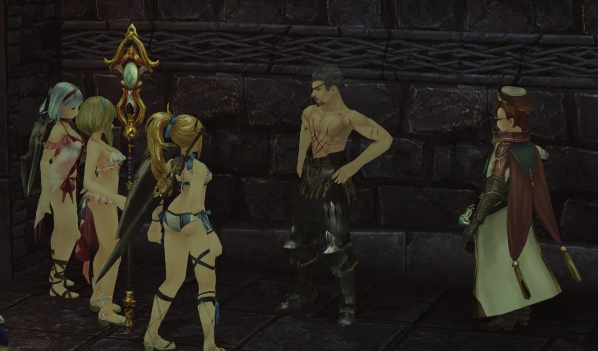 1枚目:砦で立ち塞がる衛兵に対して色仕掛けが通用せず強行突破を図るソフィア
