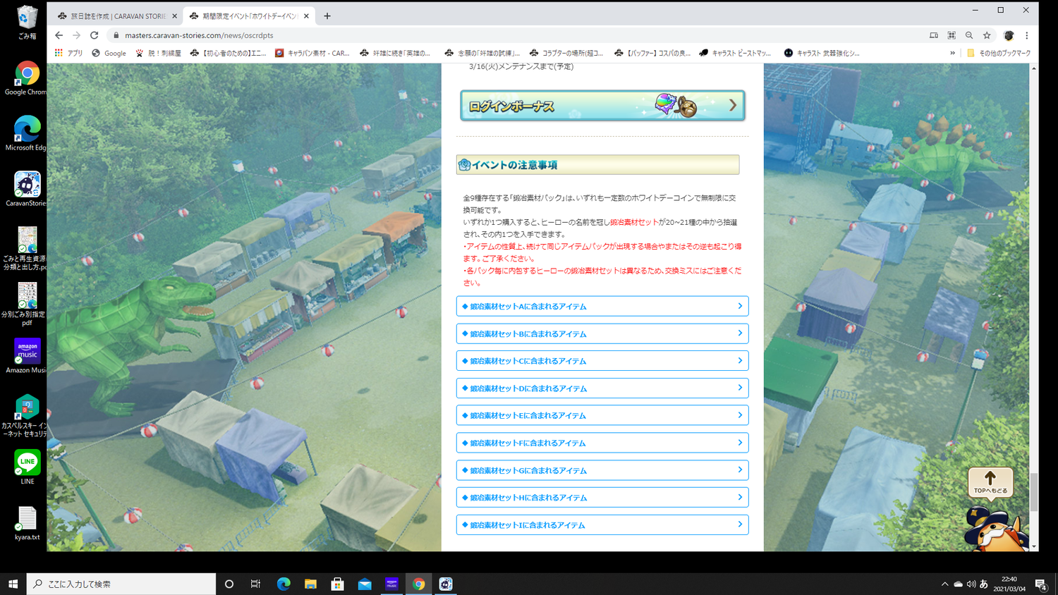 キャラバンショップのホワイトデーから鍛冶セット購入