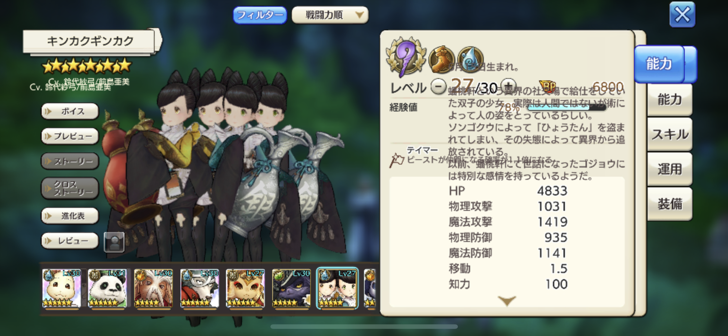 誰でもいいからメンバーの名前をポチってキャラクターを開く。