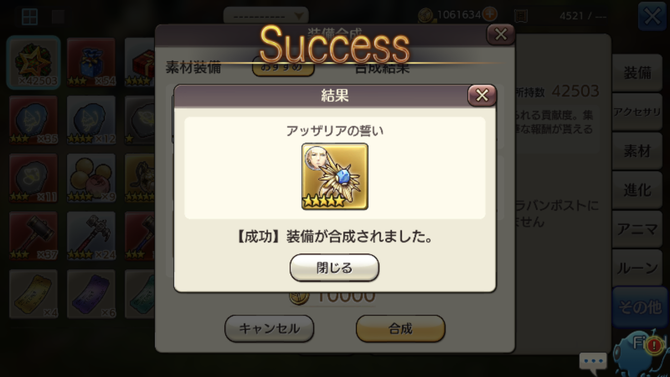 解放間近のヒーローの合成成功、レアビースト一発テイムという形です。