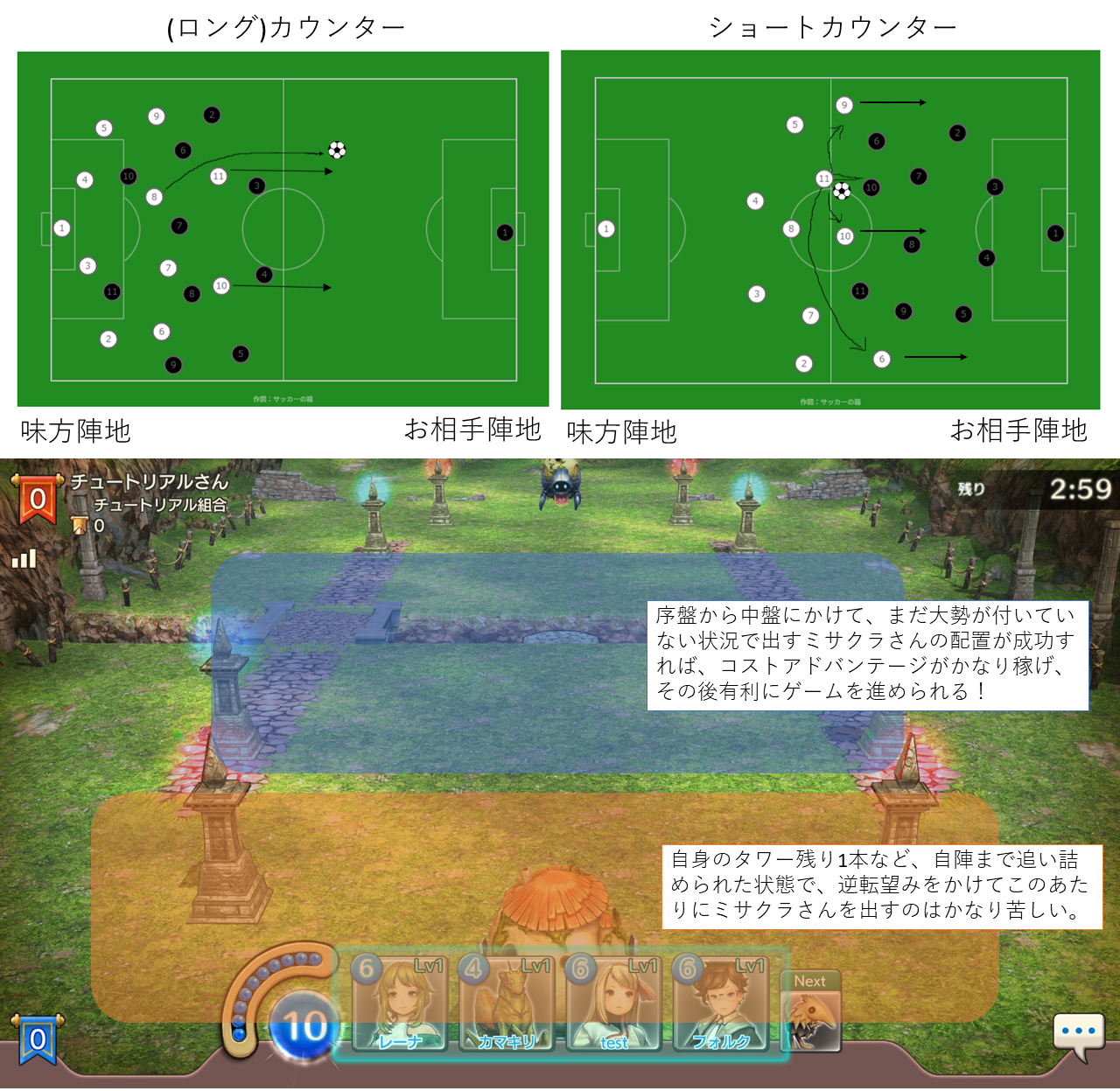失敗(初撃スキル出る前に相手キャラに倒されたり)するとコスト7失うので、中盤~終盤や、強敵相手にはそのまま負けちゃいます( > <。)……スコアがかなり低いお相手や、まずは序盤(失敗しても立て直せる可能性あり)に気楽に出してみるのがいいかも( ̄・ω・ ̄) あと、デッキにミサクラさん入ってるだけで駆け引きになるのよね。ドワフ温存検討したり、大量展開待ってみたり