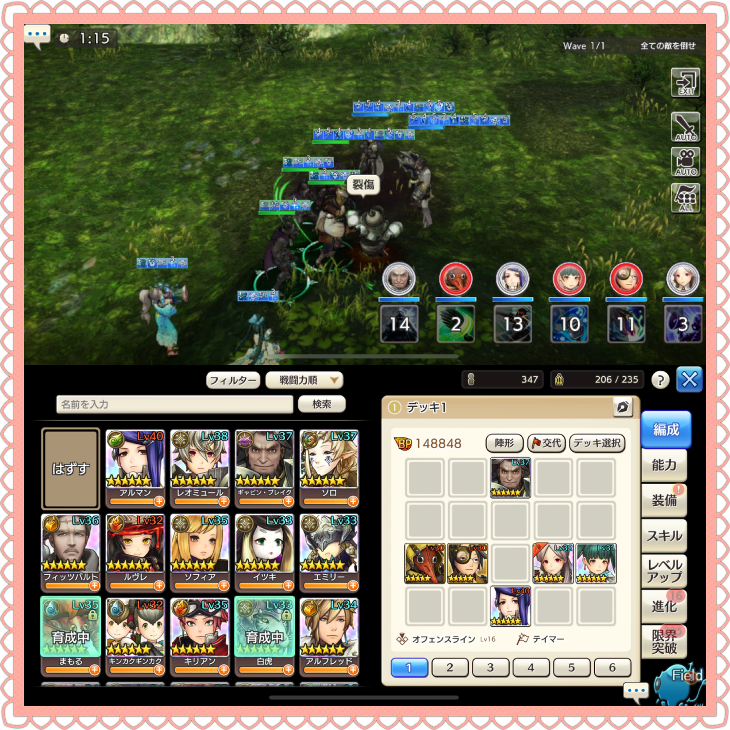 …以前から、被ダメは耐えられるのでアタッカー1人増やせばいけそうと思っていつつも、ミリ残しが悔し過ぎて「意地でもアルマンさんのアタックメインで越したい!」と残してきましたが、やっっっとクリア出来ました(*´∀`*)