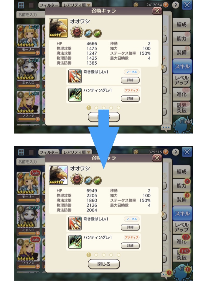 オオワシちゃんのステも上がって☆5のアタッカーなら狩ってくれるようになったよ