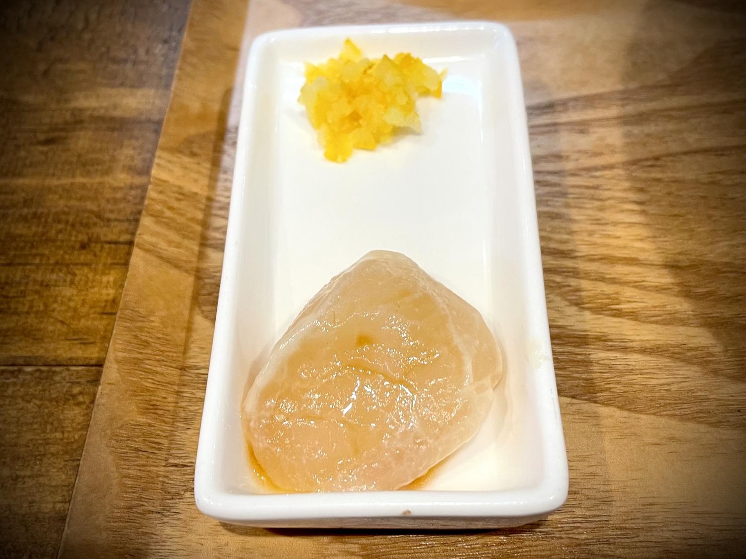 その後、店員さんが「ホタテの塩麹です。お先にどうぞどうぞ」