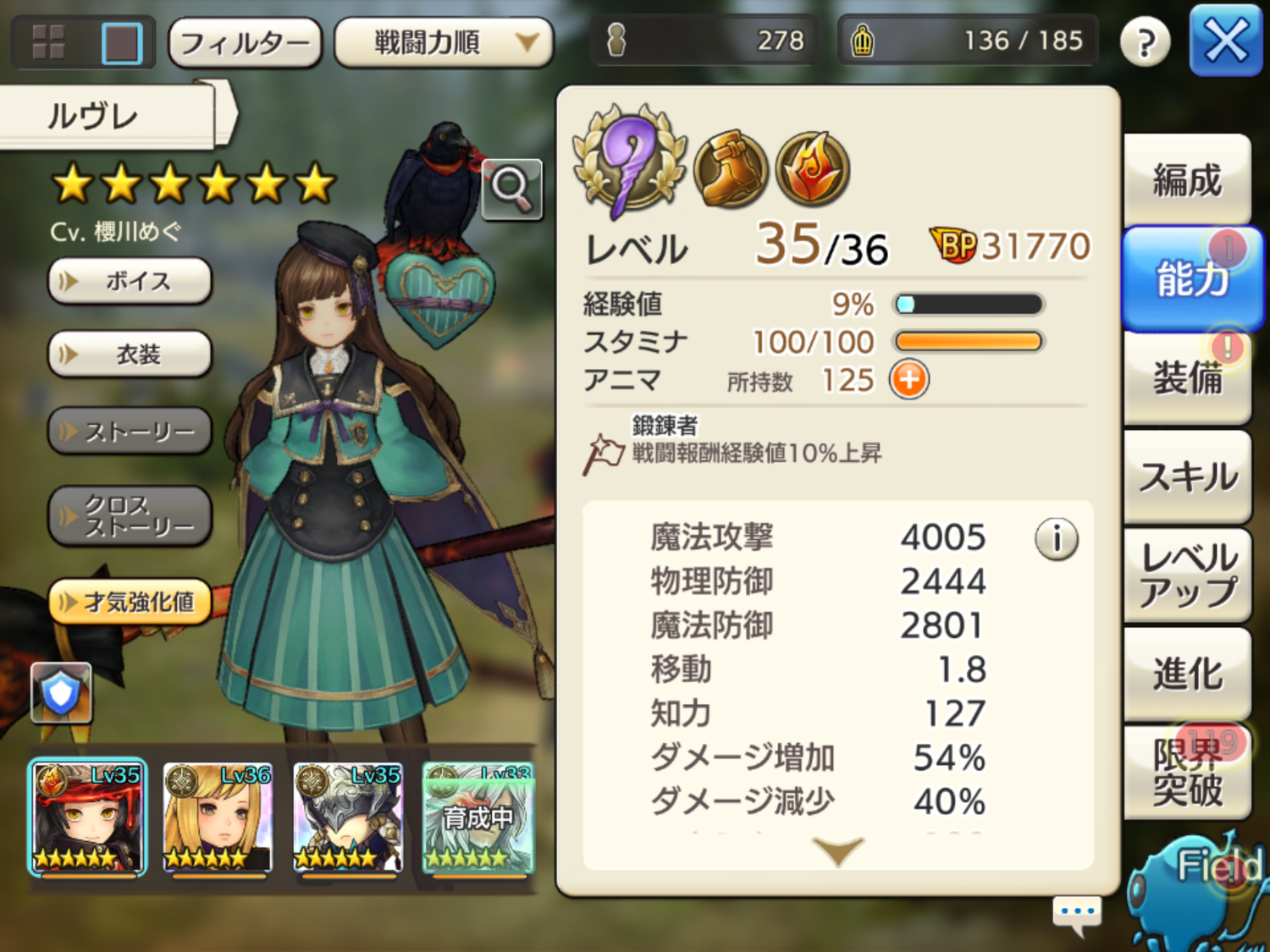 おぉ~ナイス。レベル35でBP31000越え~。伸びしろまだまだあるし、強すぎる。