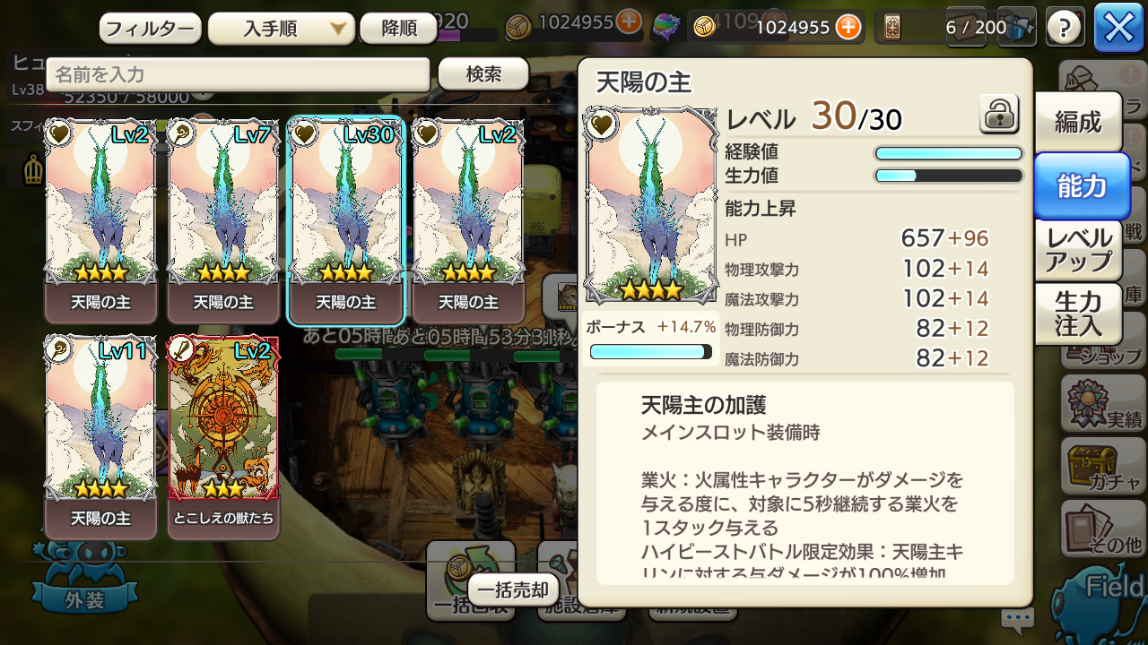 ブレシングカードは適当にレベル上げて