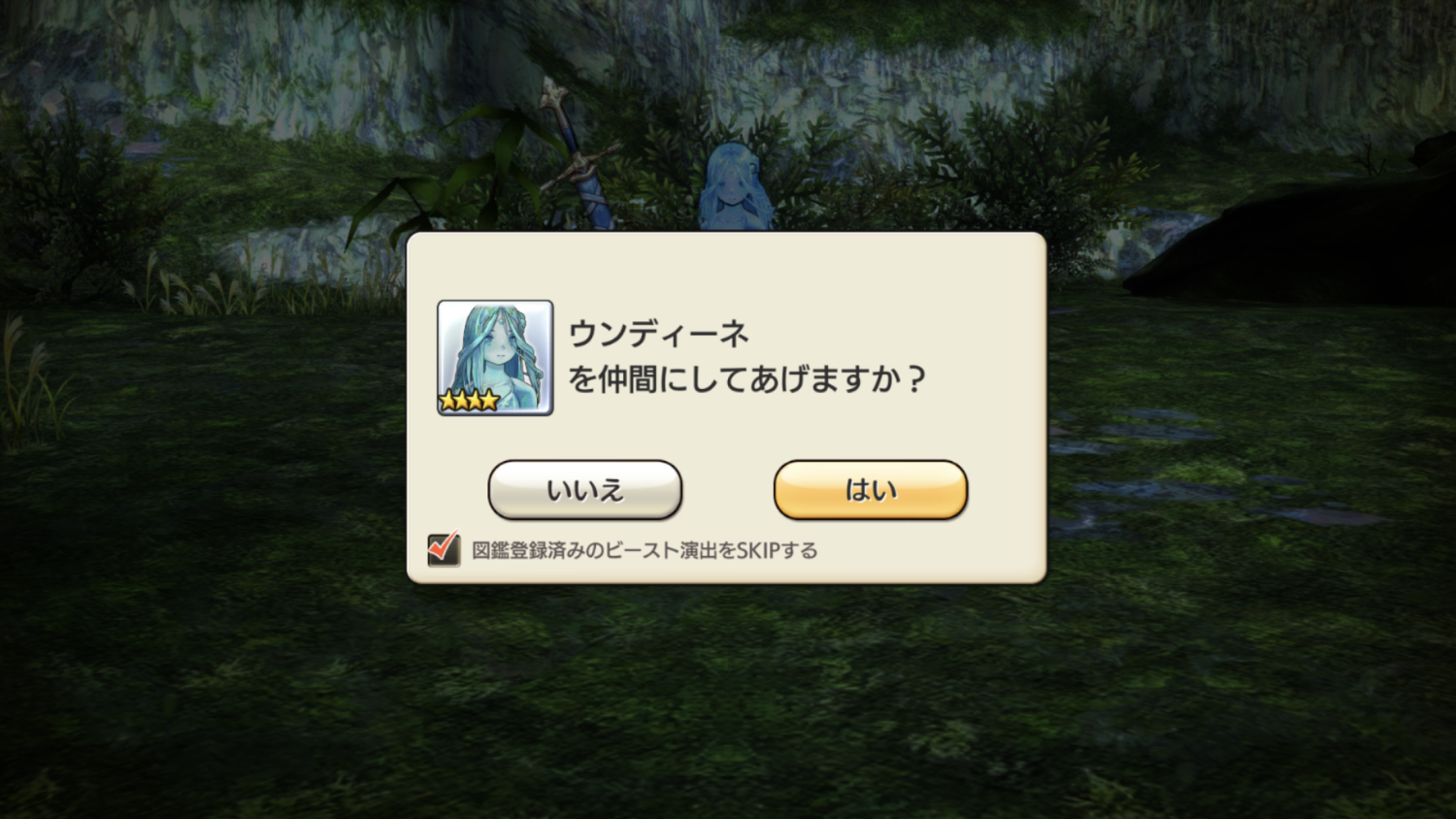 で、何を血迷ったのか・・・ウンディーネさんがナンパ出来たなら、きっとガチャも何かいいの引けそう!な気がして、なけなしの幻魔石を投入!!