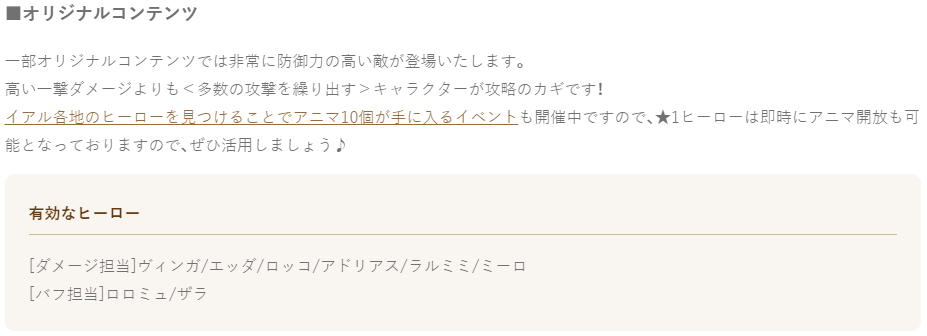 オフイベのオリジナルコンテンツでは多段ヒットキャラが有効とのことです。