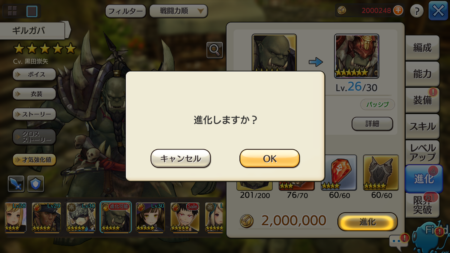 まだ次に★6進化させたいキャラが控えているので早めに貯蔵庫を大きくしなくてはならないですけど。