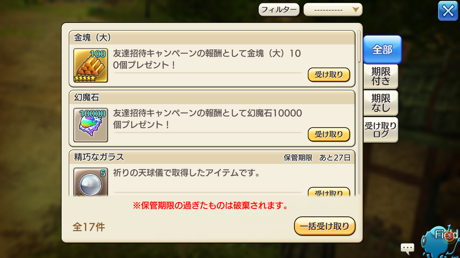 同時期に始めて同程度の進行のフレンドさんが引退されるのはつらいものがありましたが、またもしかして戻ってこられるかもしれないので、そのチャットの名前からフレンド申請を出し直して今日、76日が経っています(つまり今回振り込んだ石は私自身のLv到達報酬というわけです)。