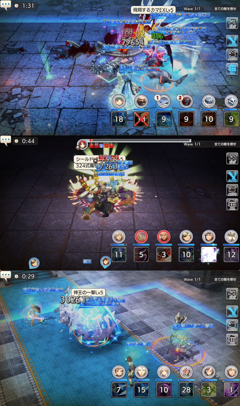 単体攻撃をタフな固有キャラのHPゲージを見ながら均等に当てていきます。