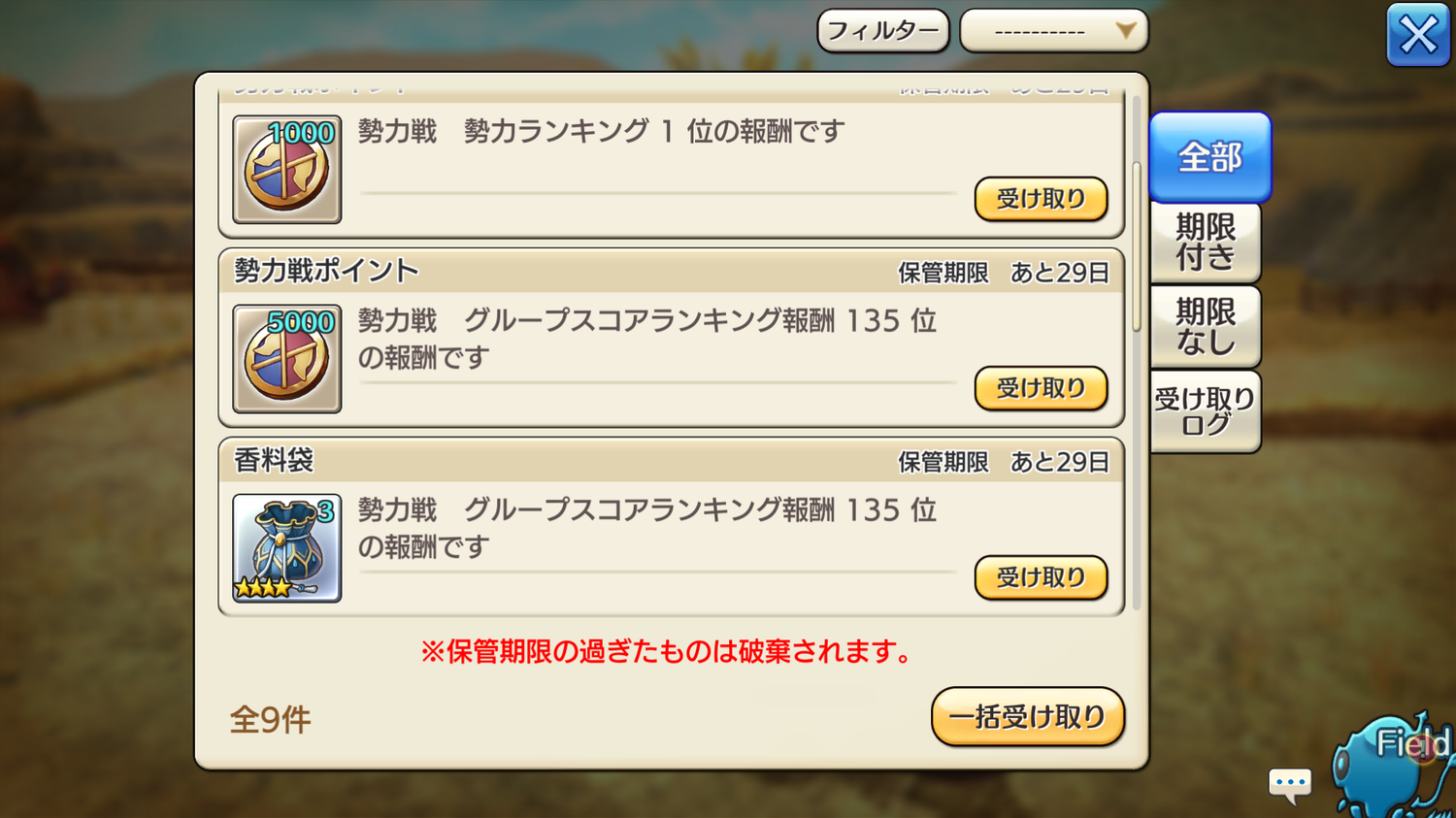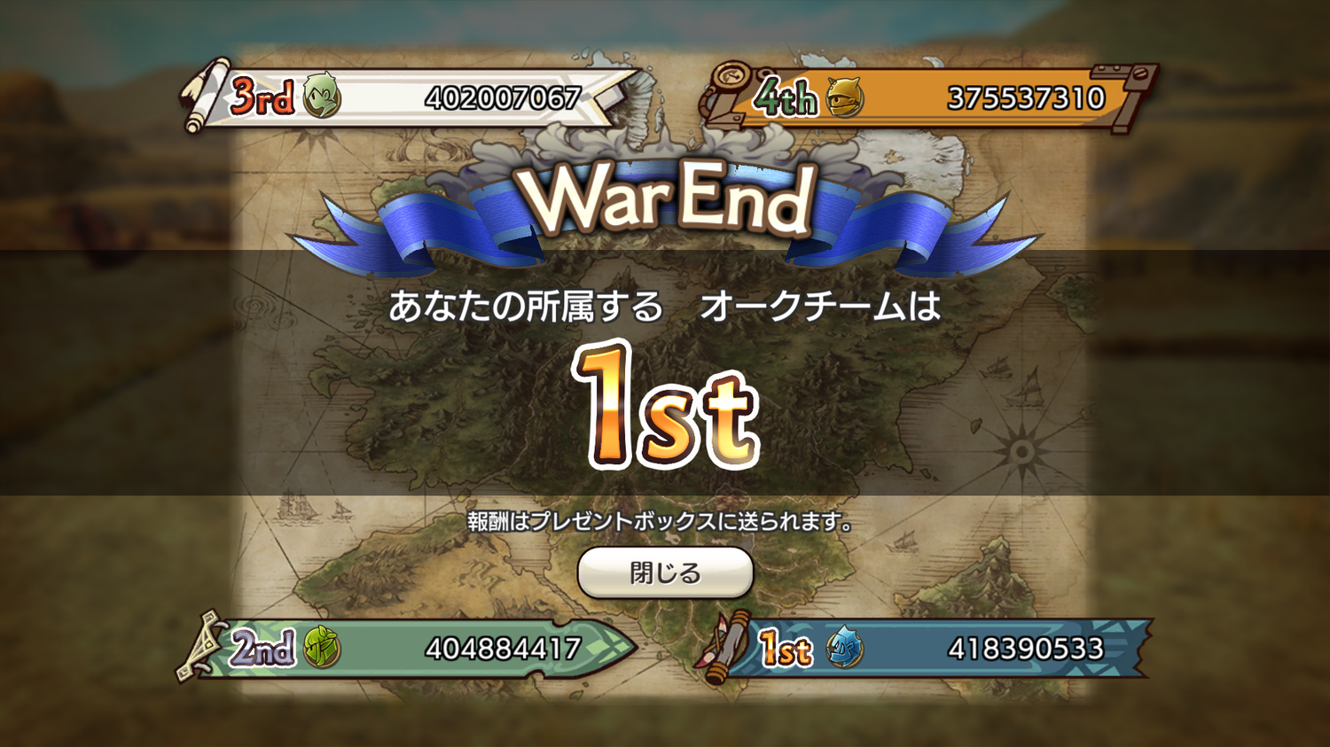 ギルドの皆、今回の勢力戦に、ご協力ありがとうございました!!
