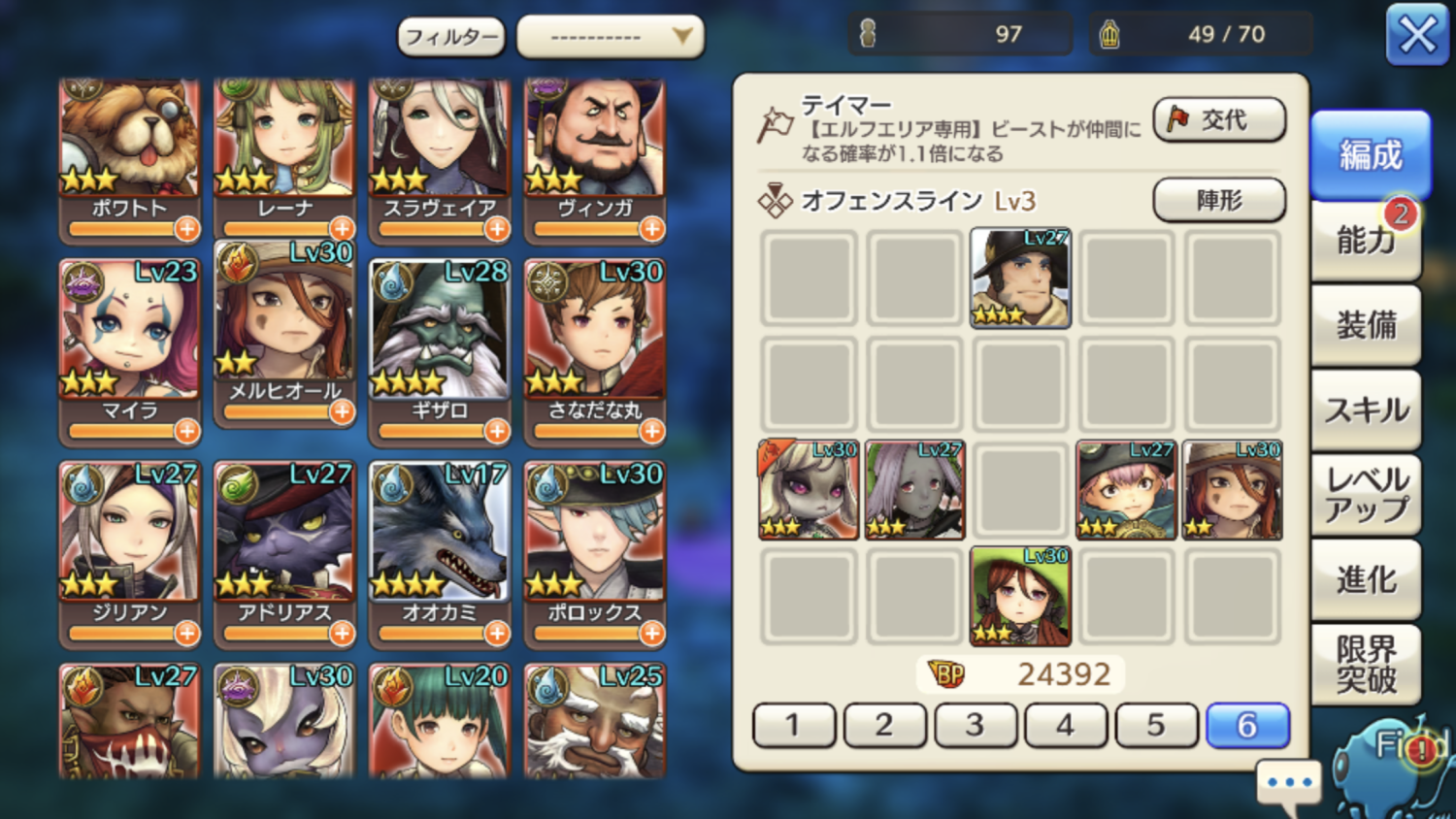 後の連中は、皆星3スキレベ等をいじってるのは、ミンミのみ