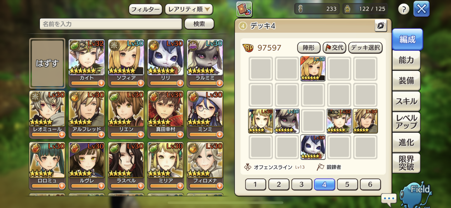 他の方はエッダとかベネガとか?を使ってたような気がするけど全く育ててないので今できる全てをつぎ込んでるけど、サポーターをもっと強くすべきなのかもしれないな…でも、アルフレッドの魔攻上昇もLv 5に達してるし、ほんとどうしましょう…